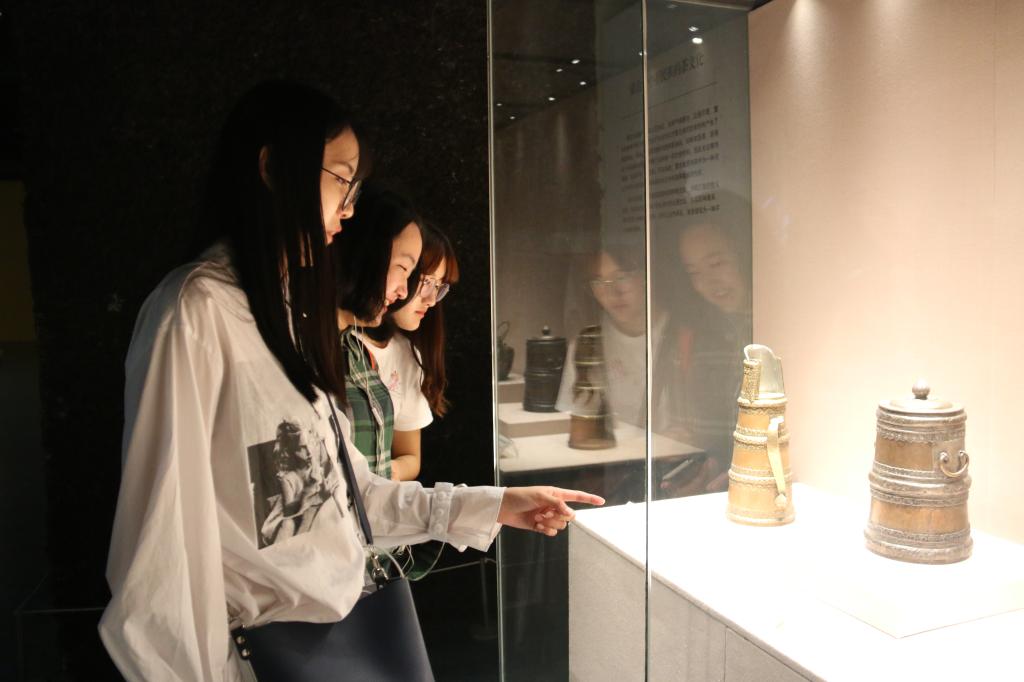 湖北省博物馆中藏有反映湖北省从原始时期以来各个历史时期的社会制度、社会生产和社会生活的各类文物、标本。这些藏品绝大多数来自考古发掘和各地征集,其中以出土文物为主,既有浓郁、鲜明的地方色彩,又具有时代特征,基本反映着湖北地区古代文化的面貌。尤其值得注意的是,一部分器物即使在中国古代文化发展史上也具有举足轻重的地位。同学们被博物馆中陈列的文物和文献吸引,感受着江汉流域地区的悠久历史,体会着荆楚文化散发的独特魅力。同时,他们被湖北地区古人的智慧折服,感叹历史的沧桑与时代的变迁。