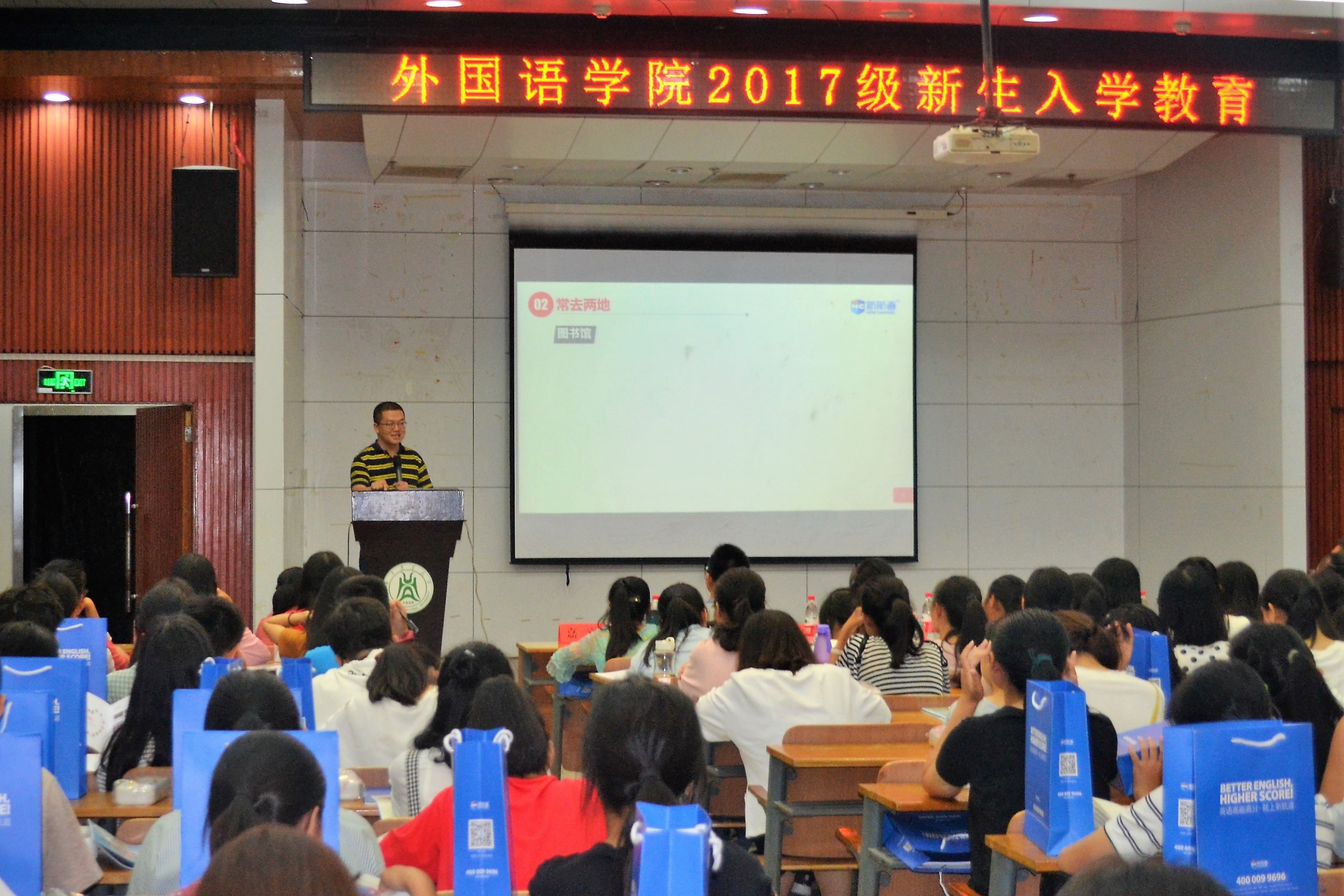 9月25日晚7:30,tyc122cc太阳成集团全体2017级新生在大学生活动中心报告厅参加了一场专为外国语言文学类专业学子准备的大学职业生涯规划第一课——由武汉新航道国际教育集团总裁助理兼武汉新航道学校校长李俊杰老师主讲。tyc122cc太阳成集团党委副书记杨成才出席了此次活动。
