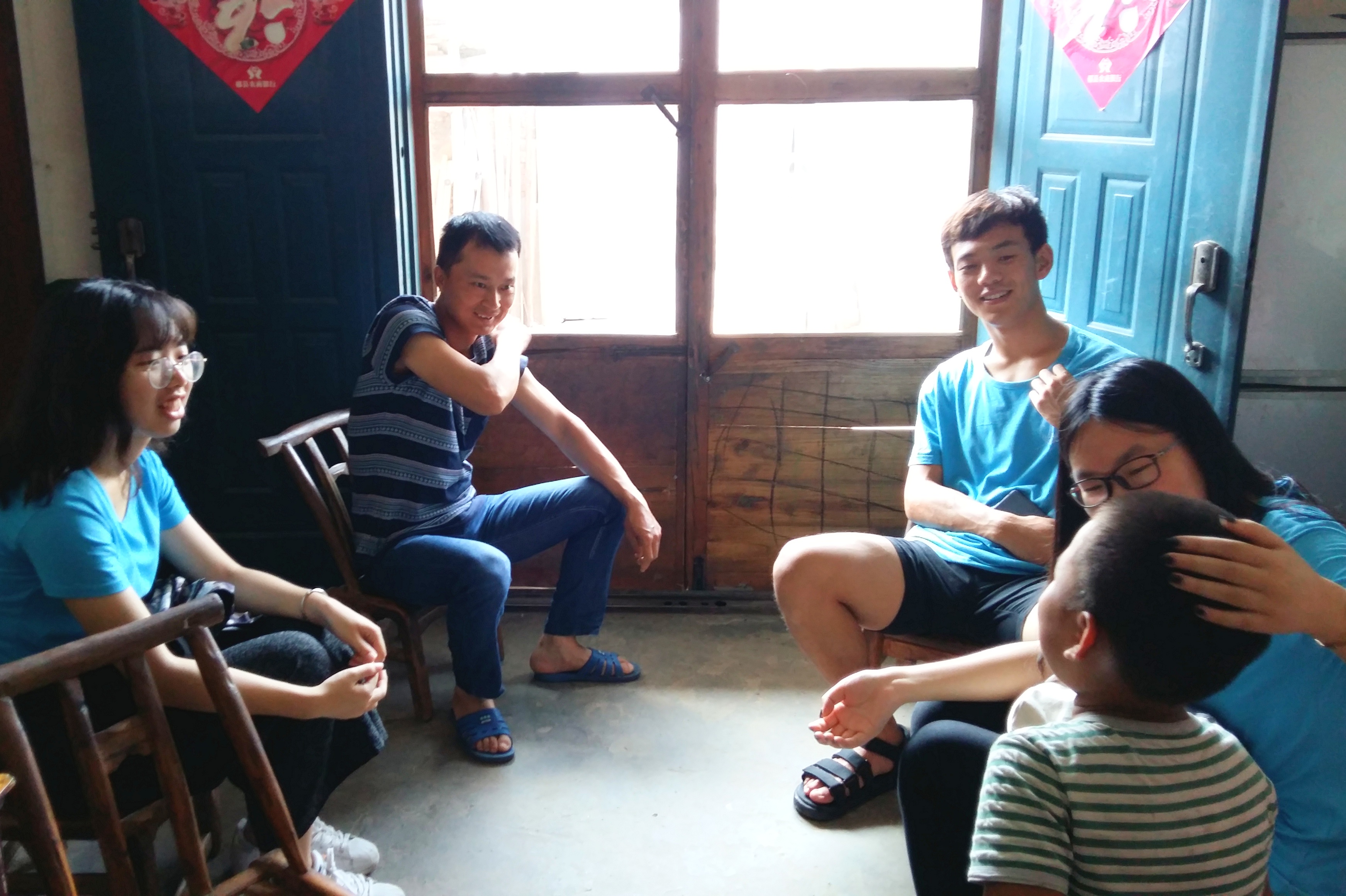 支教团成员栗晨霞、刘宇凡、韩诗禹、周贻滏来到学生王润琴家中进家访。