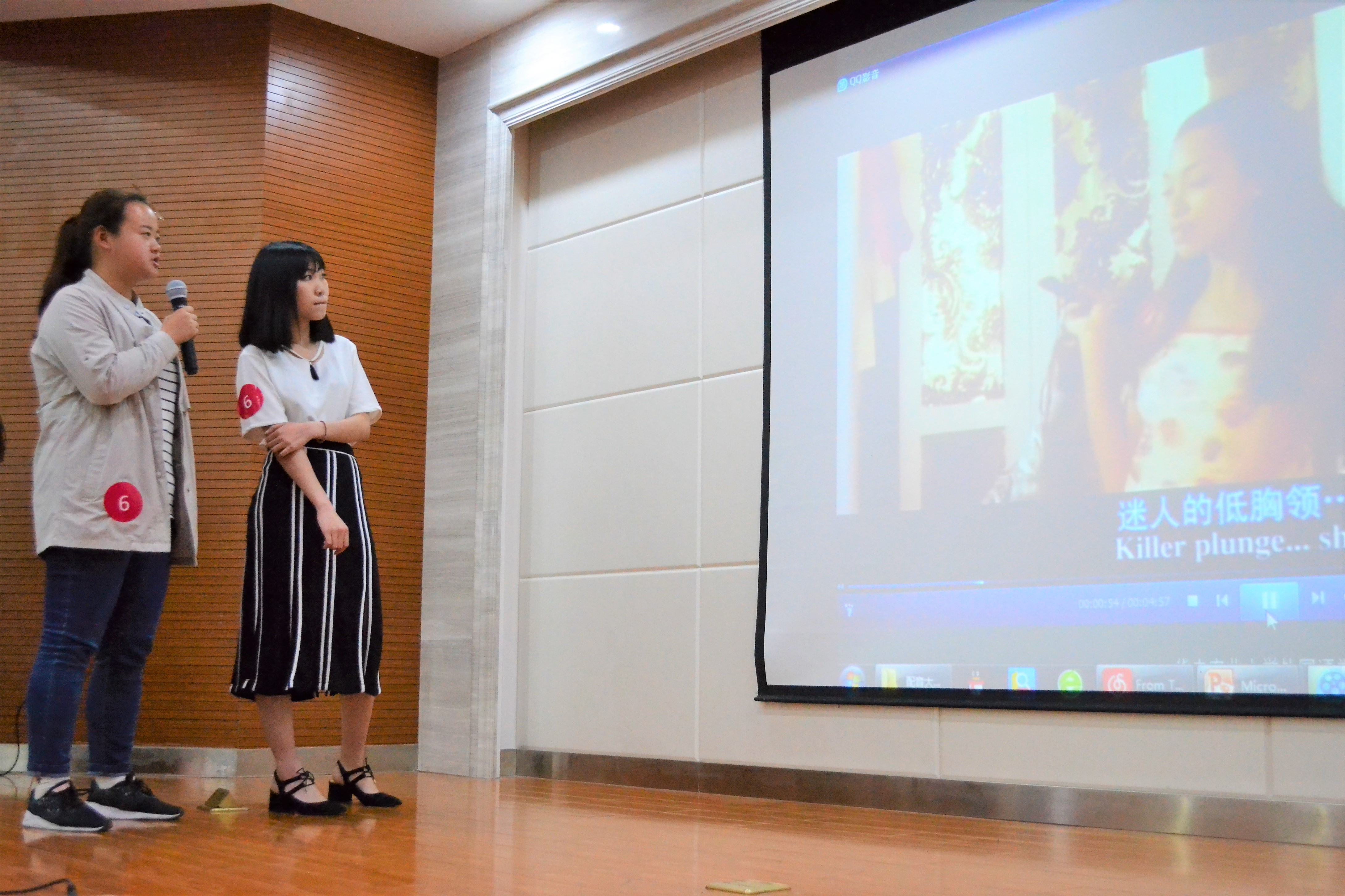 活动伊始,主持人宣读比赛规则和注意事项,随后八组选手按照抽签顺序上台,对赛前准备的视频进行配音。参赛小组选取的配音影片内容广泛,不少角色配音难度较高。这些影片的角色有《超能陆战队》的科技小神童Hiro和超级英雄大白;《马达加斯加》中Alex、Marty、Melman、Gloria这几位能说会闹的好伙伴;《反芭比》中四个前卫活力的年轻女孩雅思米、洁儿、萨莎和克萝......每组选手都尽心尽力地融入剧情,他们的配音不仅发音地道,而且对人物的情绪表达恰如其分,堪比影视原声。经过一轮比拼后,由彭双全带领的第四小组、周媛带领的第七小组、冯可欣带领的第二小组、吴佩伦带领的第八小组以及张梓涵带领的第三小组进入第二轮比赛。在第二轮比赛中,五组选手对指定片段《冰雪奇缘》进行原文配音,参赛者们各展其姿,将自己的创造力发挥的淋漓尽致,配音模仿的惟妙惟肖。观众们在欣赏影片的同时也体验了另一种英语学习的情境。
