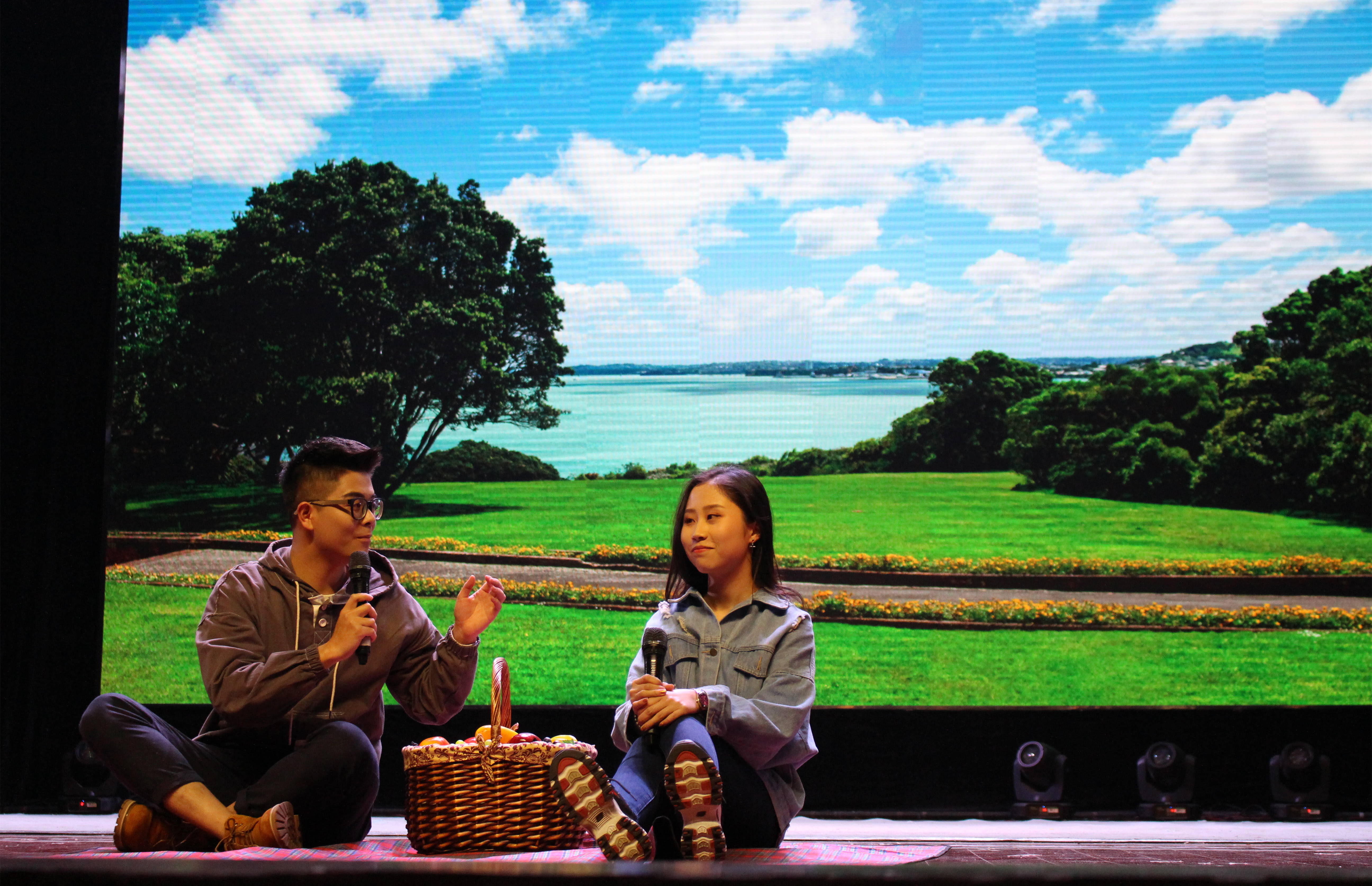 在镜灵剧社与达人舞团联袂出演的舞台剧《爱该怎么说出口》中,演员和舞者们们都拿出了专业的素养,向观众们诠释了爱的正确表达方式:从来就没有那么多恋爱技巧和恋爱建议,爱在该出口时就要坚定地说出口。莅临晚会现场的杨书记和三位辅导员也毫不逊色,倾情演唱《突然好想你》和《我要你》这两首歌曲,表达对学生的心声,尽展工作之外的风采,成为晚会的亮点,将晚会推向高潮。此外,主持团为观众带来诗朗诵《祖国,用青春的名义为你歌唱》,感情真挚饱满、慷慨激昂,表达了他们对祖国的热爱与赞扬。