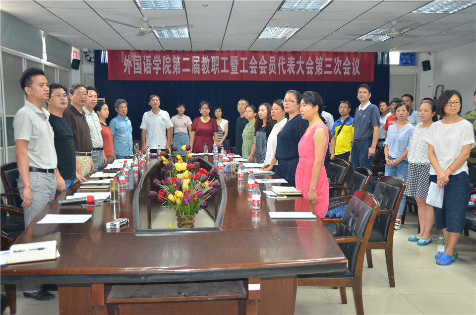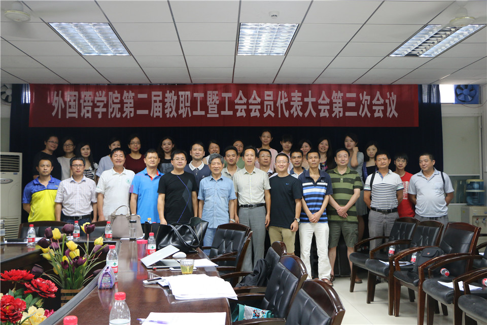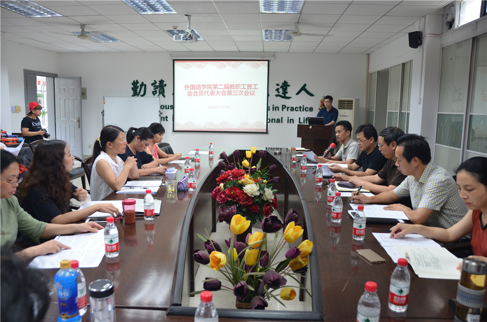 7月14日下午,tyc122cc太阳成集团召开第二届教职工暨工会会员代表大会第三次会议,审议学院“十三五”事业发展规划,听取2015-2016年学院工会工作报告。学院教职工暨工会会员代表、特邀代表等参加了会议。校党委常委、副校长李崇光、校工会负责人余顺华同志等出席会议。