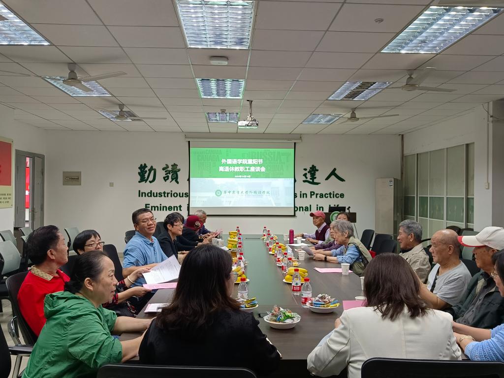 岁岁重阳今又重阳,10月10日,学院在人文楼附楼102会议室与退休教师共话重阳。学院党委书记冯国林、副院长秦发兰、系部教师代表参加了共话重阳活动。