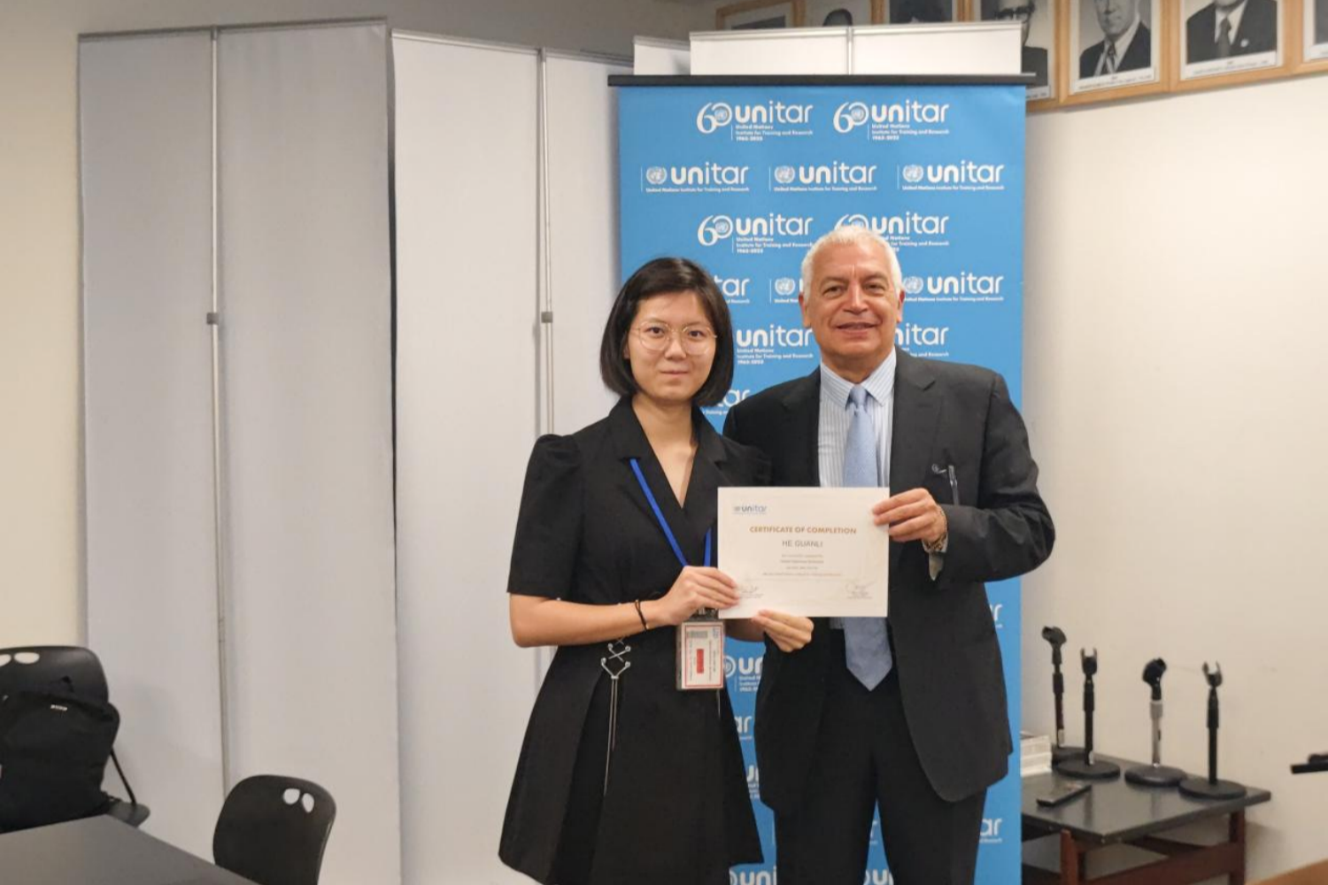 英法创新实验班何冠丽同学在纽约联合国总部训练研究所实训并获得证书