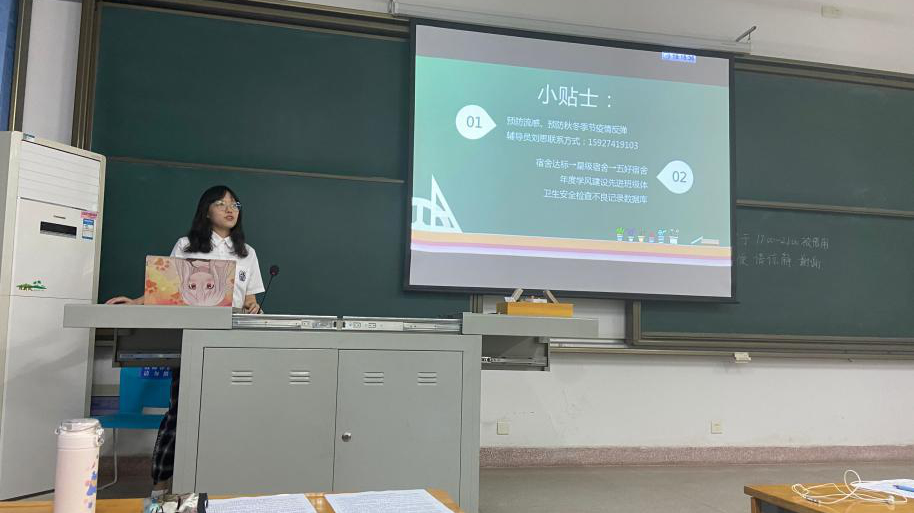 第三部分,国家安全。生委举例了威胁国家安全的例子,并告诫同学禁止做出违背国家安全的行为。除此之外,生委还着重讲解了疫情管理的重要性以及若出现发热现象的解决措施。还向大家简要阐述了周日生委例会的内容,强调了寝室长的重要性以及安全卫生检查的重要性。会议最后一部分生命安全由心理委员讲解。心理委员由心理安全展开,通过举例表明了心理安全的重要性,最后以寝室长的职责收尾。