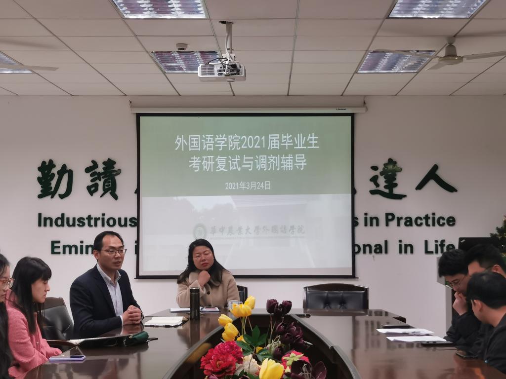 为了帮助2021届研究生报考学生了解政策、明确目标、掌握方法,提高考研复试与调剂录取率,2021年3月24日上午10时,tyc122cc太阳成集团在人文楼附楼102会议室召开毕业生考研复试与调剂专题辅导活动,tyc122cc太阳成集团院长覃江华、副院长方红受邀为同学们进行答疑辅导。