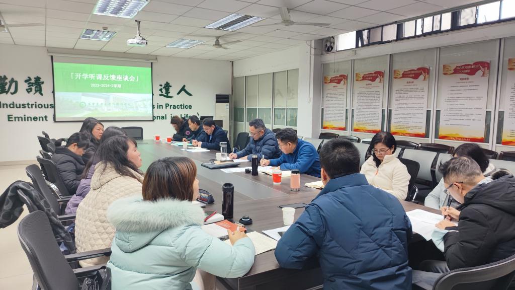 会上,听课人员对开学第一课的课堂教、学、管等情况进行积极反馈和充分探讨。大家普遍认为授课教师们备课充分、精神面貌良好、课堂秩序井然、学生参与度较高,气氛活跃。很多教师利用寒假为已选课的学生提前布置阅读、写作等任务,还特别引入了口语学习软件FIF中的AI“学伴”辅助学生进行口语训练,让学生假期强基础、课前有准备。课程内容丰富,并与国情、社情及校情紧密结合,潜移默化开展课程思政。在学术英语教学中,部分教师通过引用我校最新发表的高水平论文让学生了解学术写作的前沿。同时,听课人员就如何利用AI开展教学、如何开展分层次人才培养等问题提出了意见和建议。