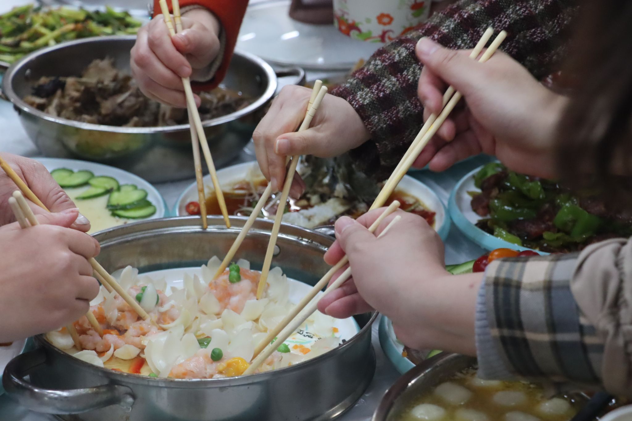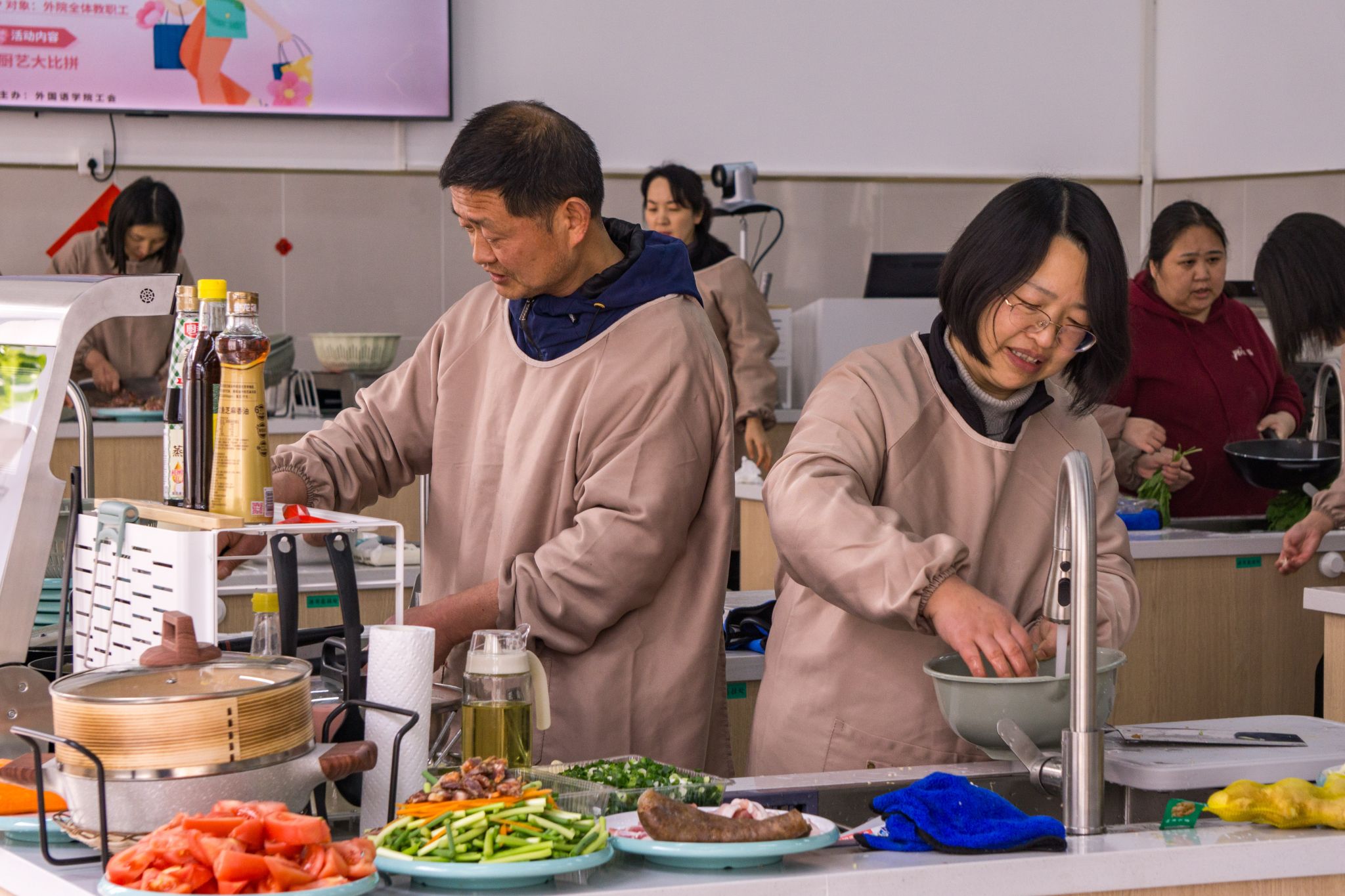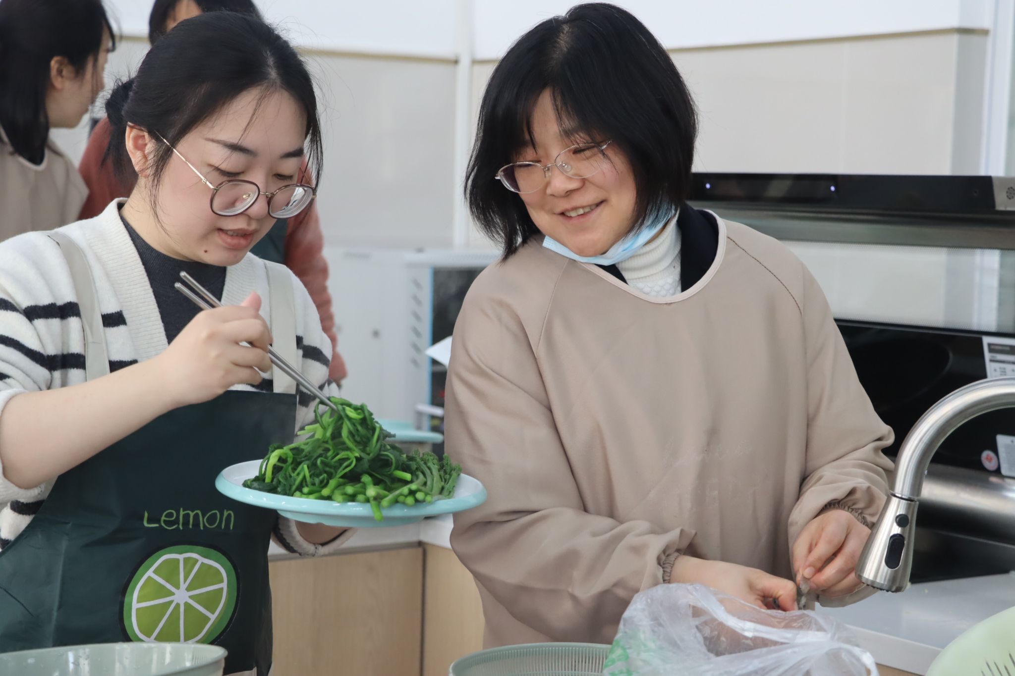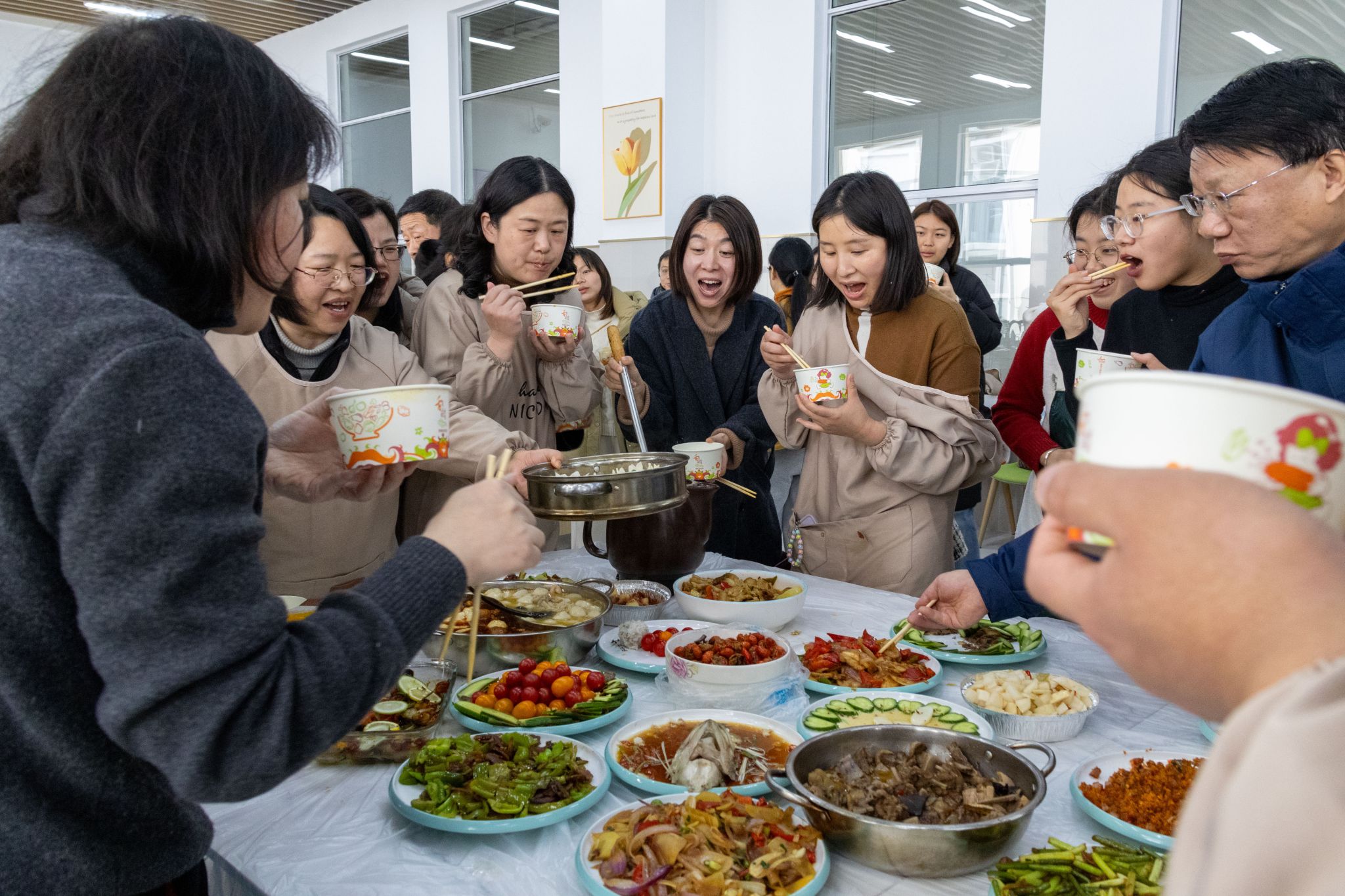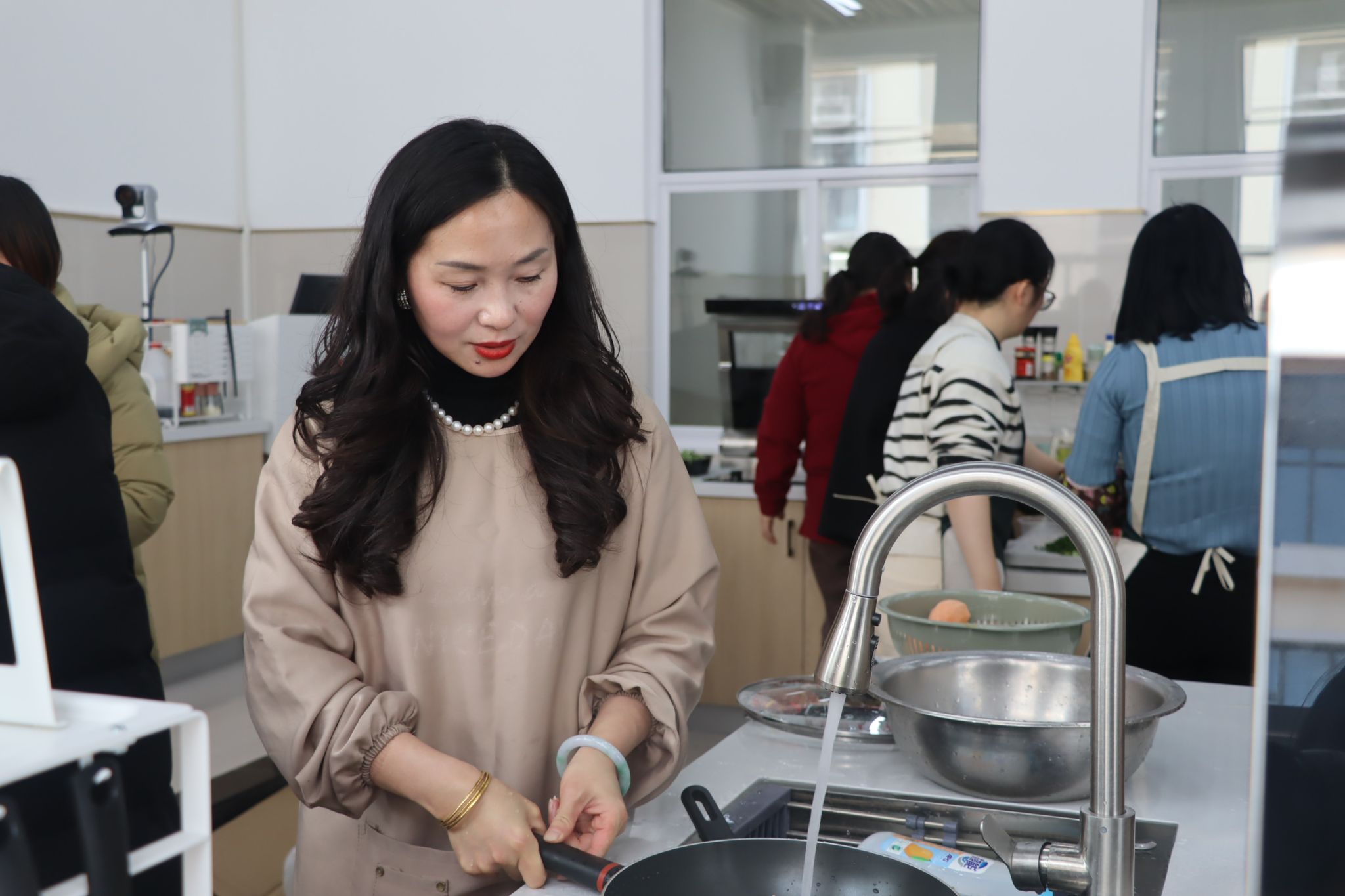 在煎炒烹炸声构成的欢快乐章中,各式菜肴陆续上桌,师生们围坐分享、举箸畅谈,在美食氤氲中传递节日喜悦,于烟火气息里彰显巾帼风采。