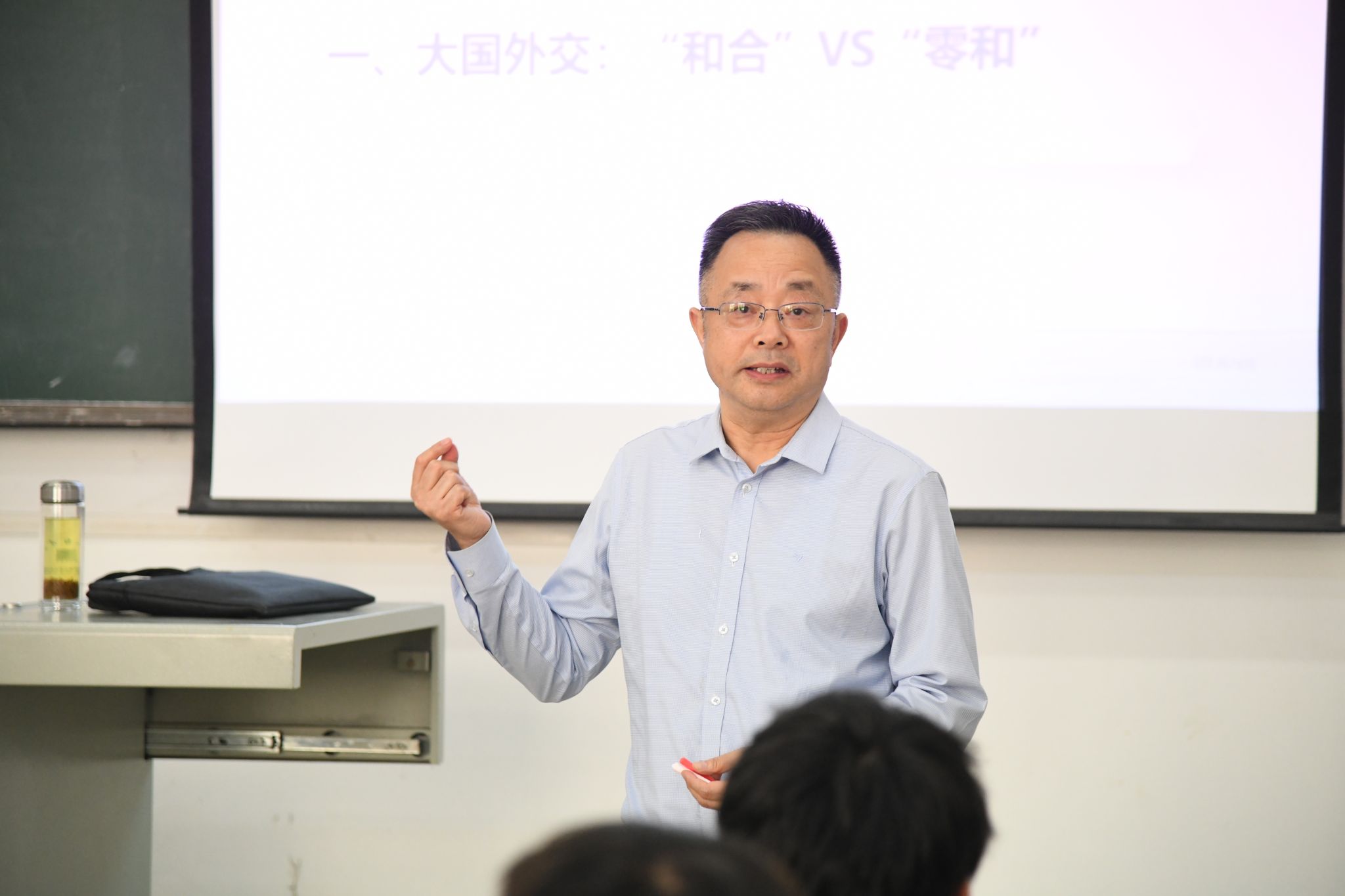4月8日下午两点半,我校副校长青平走进tyc122cc太阳成集团2024级英语专业学生的“形势与政策”课堂,为同学们带来了一场关于“大国博弈与外交对策”的精彩课程。