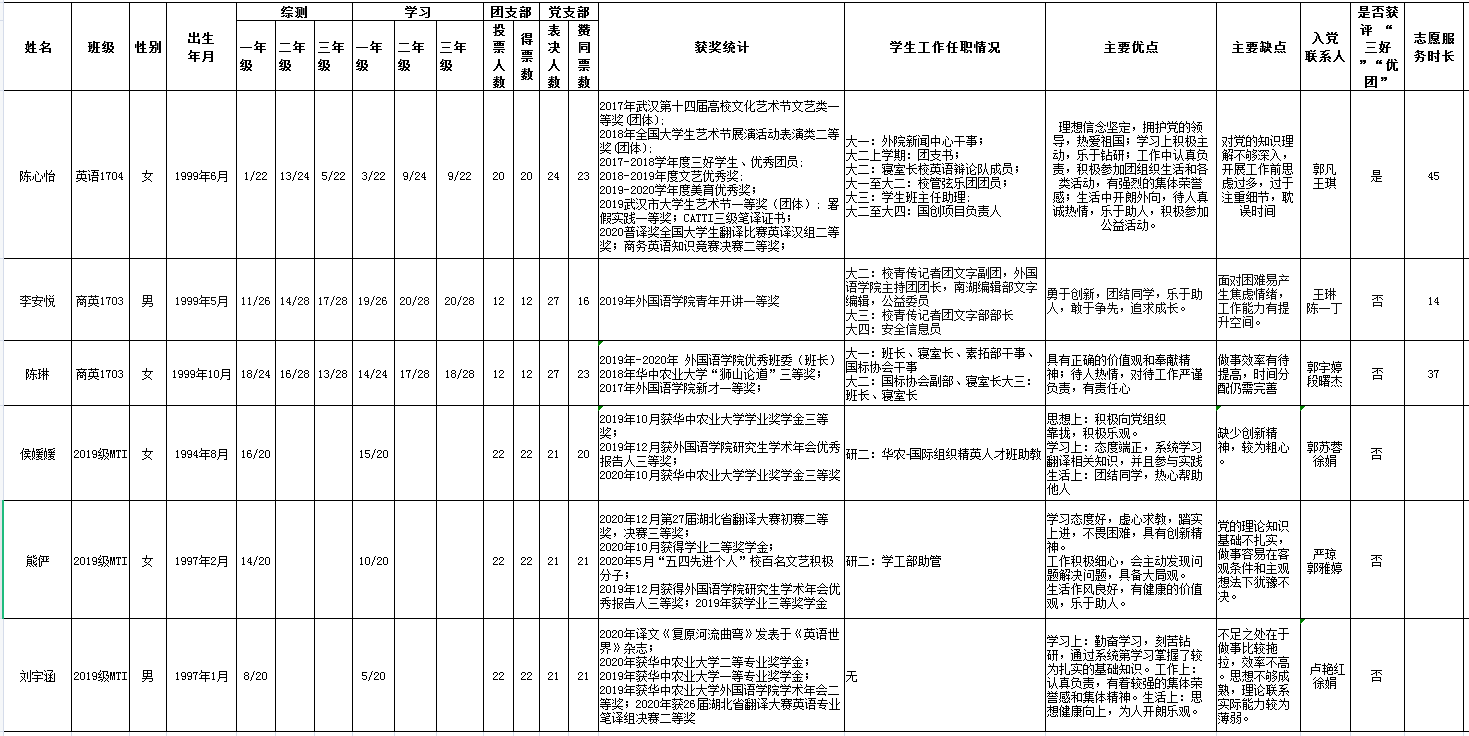 经一年以上培养教育和考察、基本具备党员条件的毕业生班级入党积极分子申请,党团支部推优,大学生党总支考察,基层党委讨论研究,确认陈心怡等6名同志为tyc122cc太阳成集团2021年3月拟发展对象,现将名单予以公示,公示时间为:3月17日-3月23日,共七天。