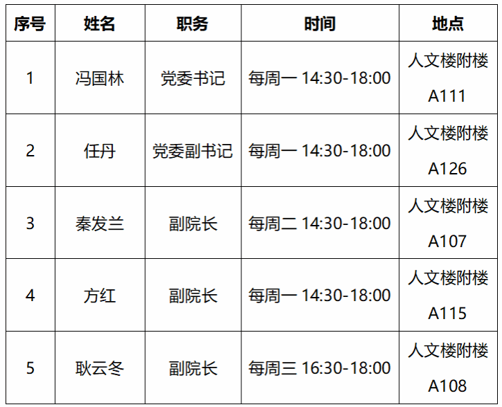 tyc122cc太阳成集团领导班子“Office Hour”安排表
