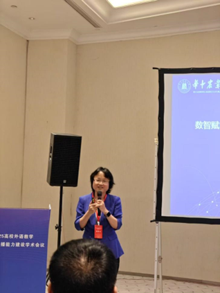 4月11日至13日,由北京市高等教育学会大学英语研究分会、中国外文局文化传播中心联合主办的“2025高校外语教学与国际传播能力建设学术会议”在杭州举行。我院副院长秦发兰受邀参会,并作题为《数智赋能“四新”大学英语教学 助力国际传播能力建设》的专题报告,从实践探索与战略规划角度为高校外语教育改革贡献智慧。