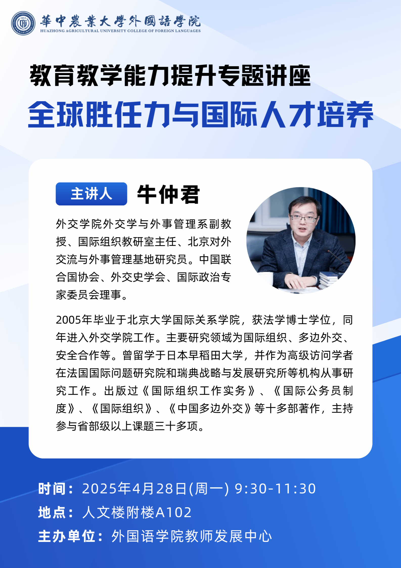 教育教学能力提升专题讲座:全球胜任力与国际人才培养
