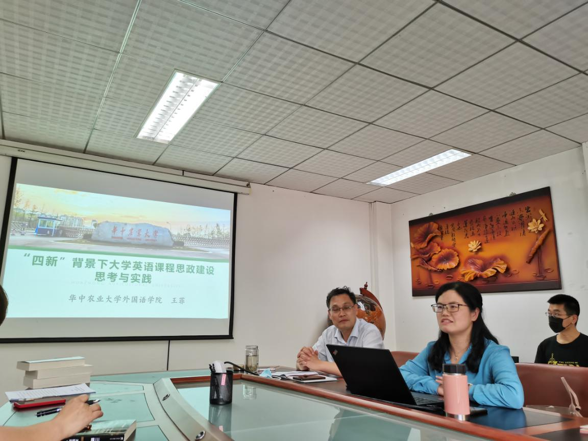 5月26日下午,tyc122cc太阳成集团副院长王菲受邀在中国地质大学(武汉)作了题为“‘四新’下大学英语课程思政思考与实践”报告,与地大tyc122cc太阳成集团30多位教师就行业特色型院校大学英语课程思政建设进行了交流。