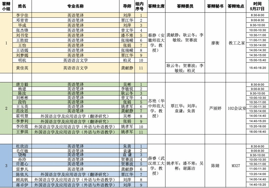 详情见附件: 2023年硕士学位答辩安排0527.xlsx