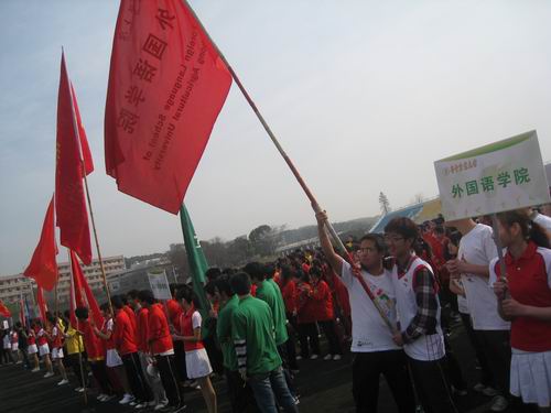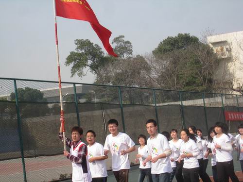 千名大一学生8点30分就集合于本校的第二排球场,个个摩拳擦掌、跃跃欲试。最先开始是个人赛,随着裁判员一声令下,参加个人赛的选手如待发之箭迅速冲出了起跑线。紧随其后的便是来自各个学院参加环校长跑的同学们。他们身着各具特色的院服,满怀着青春的激情,在这春暖花开的三月如风奔跑。时值桃花盛开,太阳成集团tyc122ccvip桃花苑一片春色盎然,前来观花的游客络绎不绝。途经桃花苑时,长跑的同学们也情不自禁放慢脚步,和游人们一起欣赏起粉嫩可爱的桃花来。千姿百态的桃花亦如风华正茂的华农学子们!由于今天天气晴朗,阳光和煦,南湖水波粼粼,恰似繁星,从湖面吹来的阵阵清风,抚弄杨柳,对路过的同学们频频招手,好像是在为汗流浃背的同学们加油打气。
