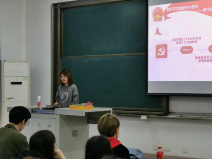 2021年3月29日12:00,商务英语本科生第二党支部在第四教学楼C211教室开展主题为“学系列讲话,悟党史思想”的党日活动。