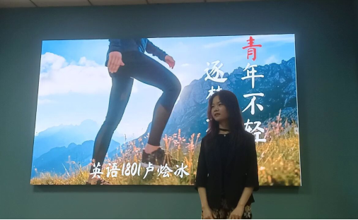 来自英语1801的卢烩冰以出色的PPT制作,在演讲开始就成功吸引了同学们的注意力。随着演讲进行,她自然优雅的肢体动作、从容有力的发言,以及内涵深厚的演讲内容更体现出她完备的思辨能力以及强大的演讲能力。出色的发挥获得同学们的称赞与评委的一致认同。