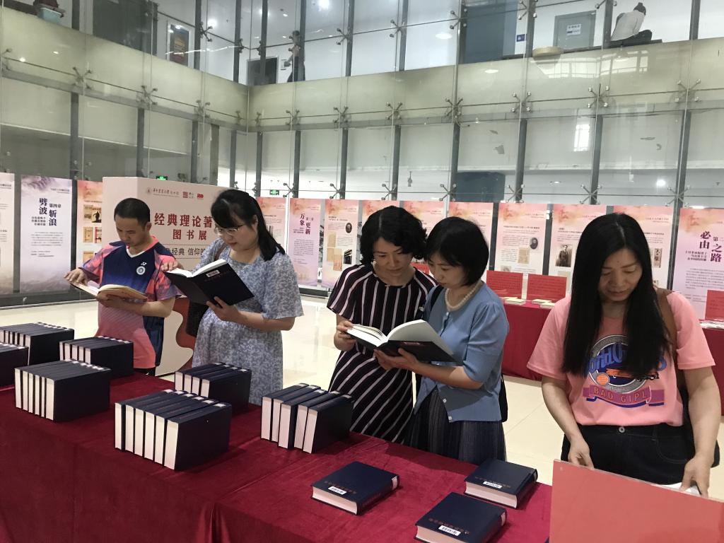 首先,支部组织教师党员一同前往校图书馆参观学习“百年党史 文献之光”党史文献展。习总书记说:“中国共产党的历史是一部丰富生动的教科书。”作为建党百年庆祝活动和党史学习教育的载体,文献展中《中国共产党历史纪实(10部)》、《中共中央文件选集》等书籍全方位深入展示了波澜壮阔的党史历程、笃定前行的人物事迹、催人奋进的伟大精神。文献展中《马克思恩格斯全集》、《列宁选集》、《毛泽东文选》等理论著作作为红色经典,信仰的源头,需要我们认真踏实地进行学习,进一步“把红色资源利用好、把红色传统发扬好、把红色基因传承好。”