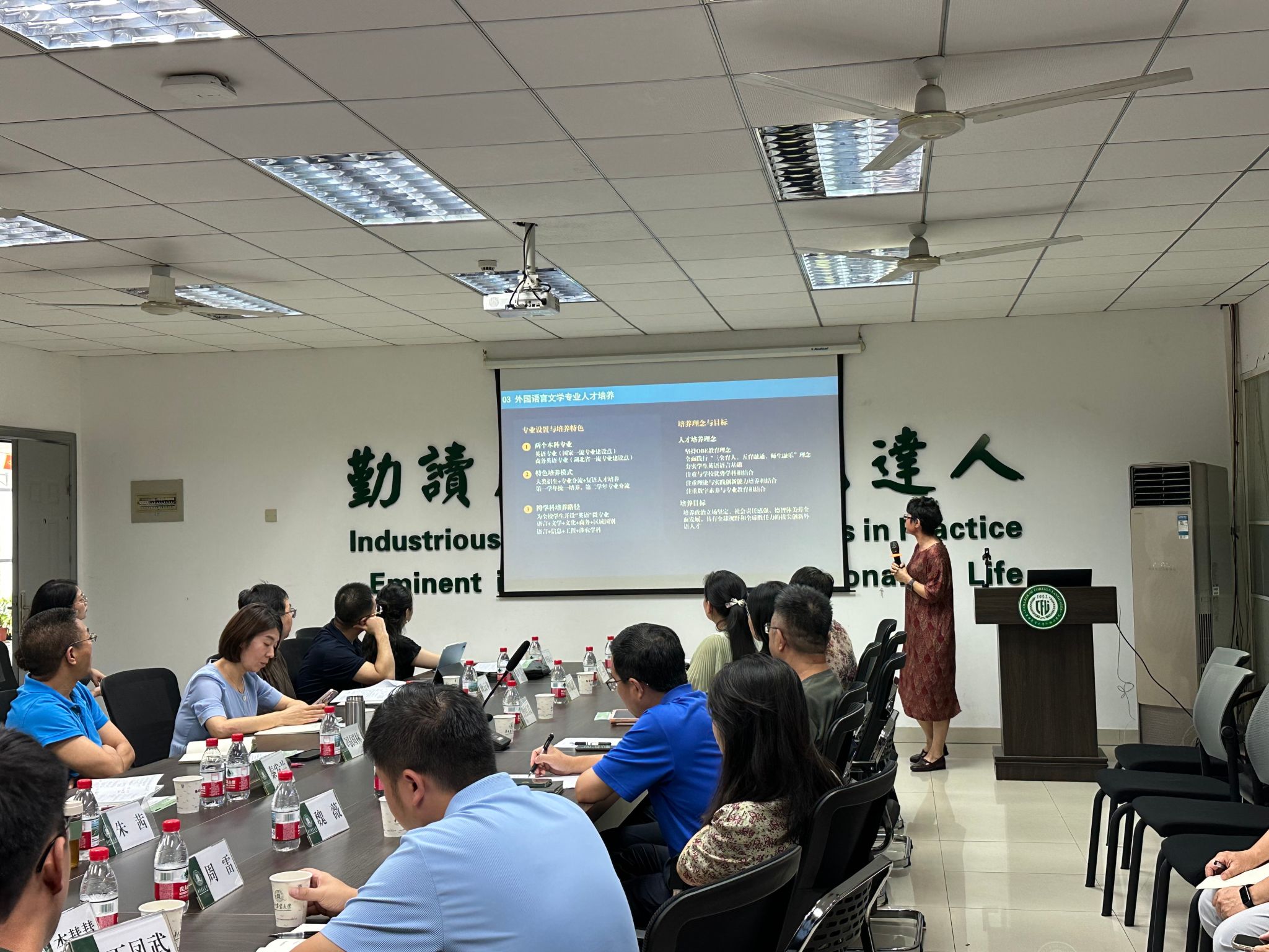程华东在点评中指出,学院推行的“公共外语教学‘四个三’模式”(三融合、三兼顾、三联动、三进阶)体现了鲜明的精细化教学特色。他建议进一步强化思政引领与价值观融入教学,并在汇报中对该模式进行更系统和全面的总结。