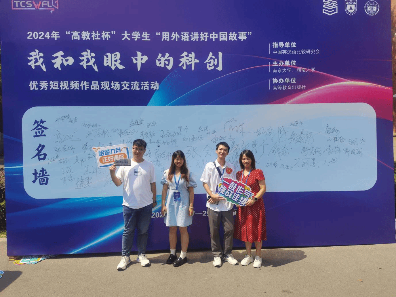 据悉,“高教社杯”大学生“用外语讲好中国故事”短视频赛是由中国英汉语比较研究会指导、南京大学主办的全国高级别赛事,已连续举办3届,核心宗旨为深入贯彻党的二十大精神,构建中国话语与叙事体系,展现中国形象。2024年赛事以“我和我眼中的科创”(献礼新中国成立75周年)为主题,全国共征集5053件作品,经9个月校级、省级逐层筛选,仅146件晋级国赛(72件参与湖南大学线下赛),每所高校仅能推荐2件作品参与省赛,晋级难度极大。赛事既要求学生具备高超外语水平,更需深度理解中国非遗文化与科创精神,将“传统传承”与“科创内涵”结合表达。