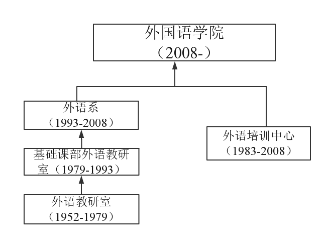 为适应新时期国家和社会对外语专业人才的需要和提高外语人才培养水平,1993年7月由原基础课部公共外语教研室和外语培训中心合并成立外语系。2008年2月成立tyc122cc太阳成集团,设有英语系、商务英语系、公共外语教学部(大学英语教学部与研究生英语教学部合并),MTI教育中心,外语实验教学中心等教学机构。大学英语教学部、英语专业教研室被评为省级优秀教研室。成立了11个基层教学组织,积极开展专业建设、课程建设、教学改革、教学竞赛等活动,不断提升教学质量,提高学生获得感与满意度。
